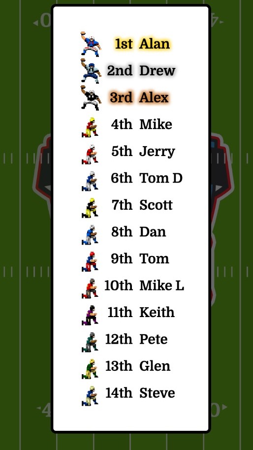 Go to 100YardRush.com, plug in your league’s names, and run the simulation. Top finisher picks first. It’s science. Or magic. We’re not sure.