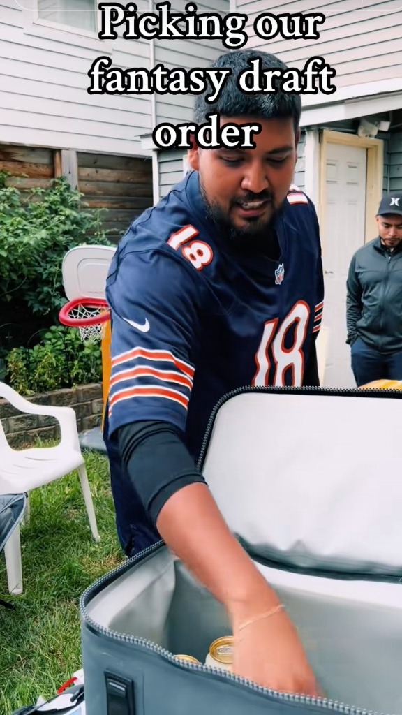 Stick numbers under beer cans. Each player picks a can. Reveal number = that’s your draft spot. Drink up, draft down.
