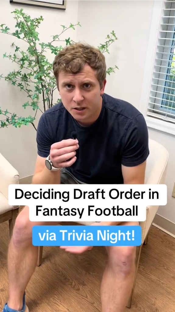 Host a trivia night focused on NFL and fantasy history. Use a host, buzzers, and scoreboard. Highest scorer picks first. Last place is shamed forever.